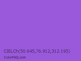 CIELCh 50.645,76.912,312.195 Color is a normal violet color and the nearest color is Navy Purple #9457eb. Hex code #9a58db and RGB value is rgb(154,88,219). In RGB color space, this color is composed of 60% red, 35% green, 86% blue, In CMYK color space, this color is composed of 30% cyan, 60% magenta, 0% yellow , 14% black , In HSL color space, this color has a hue angle of 270° , 65% saturation and 60% lightness.