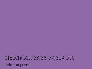 CIELCh 50.763,38.57,314.516 Color is a normal purple color and the nearest color is Wisteria #9771b5. Hex code #906aa8 and RGB value is rgb(144,106,168). In RGB color space, this color is composed of 56% red, 42% green, 66% blue, In CMYK color space, this color is composed of 14% cyan, 37% magenta, 0% yellow , 34% black , In HSL color space, this color has a hue angle of 277° , 26% saturation and 54% lightness.