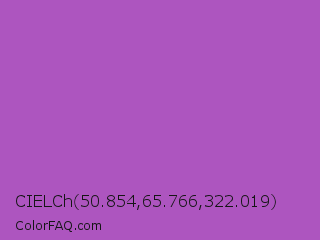CIELCh 50.854,65.766,322.019 Color is a normal purple color and the nearest color is Purple Plum #9c51b6. Hex code #ad55bf and RGB value is rgb(173,85,191). In RGB color space, this color is composed of 68% red, 33% green, 75% blue, In CMYK color space, this color is composed of 9% cyan, 55% magenta, 0% yellow , 25% black , In HSL color space, this color has a hue angle of 290° , 45% saturation and 54% lightness.