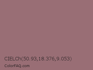 CIELCh 50.93,18.376,9.053 Color is a normal red color and the nearest color is Bazaar #98777b. Hex code #996e75 and RGB value is rgb(153,110,117). In RGB color space, this color is composed of 60% red, 43% green, 46% blue, In CMYK color space, this color is composed of 0% cyan, 28% magenta, 24% yellow , 40% black , In HSL color space, this color has a hue angle of 350° , 17% saturation and 52% lightness.