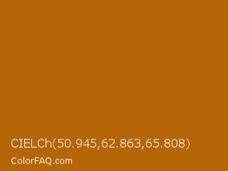 CIELCh 50.945,62.863,65.808 Color is a normal orange color and the nearest color is Mai Tai #b06608. Hex code #b46607 and RGB value is rgb(180,102,7). In RGB color space, this color is composed of 71% red, 40% green, 3% blue, In CMYK color space, this color is composed of 0% cyan, 43% magenta, 96% yellow , 29% black , In HSL color space, this color has a hue angle of 33° , 93% saturation and 37% lightness.