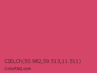 CIELCh 50.982,59.513,11.511 Color is a normal red color and the nearest color is Cabaret #d94972. Hex code #d44568 and RGB value is rgb(212,69,104). In RGB color space, this color is composed of 83% red, 27% green, 41% blue, In CMYK color space, this color is composed of 0% cyan, 67% magenta, 51% yellow , 17% black , In HSL color space, this color has a hue angle of 345° , 62% saturation and 55% lightness.