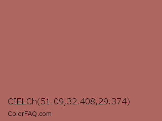 CIELCh 51.09,32.408,29.374 Color is a normal red color and the nearest color is Copper Penny #ad6f69. Hex code #ae6660 and RGB value is rgb(174,102,96). In RGB color space, this color is composed of 68% red, 40% green, 38% blue, In CMYK color space, this color is composed of 0% cyan, 41% magenta, 45% yellow , 32% black , In HSL color space, this color has a hue angle of 5° , 33% saturation and 53% lightness.