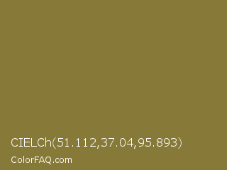 CIELCh 51.112,37.04,95.893 Color is a normal yellow color and the nearest color is Old Moss Green #867e36. Hex code #877a39 and RGB value is rgb(135,122,57). In RGB color space, this color is composed of 53% red, 48% green, 22% blue, In CMYK color space, this color is composed of 0% cyan, 10% magenta, 58% yellow , 47% black , In HSL color space, this color has a hue angle of 50° , 41% saturation and 38% lightness.
