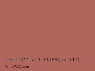 CIELCh 51.274,34.098,32.942 Color is a normal red color and the nearest color is Matrix #b05d54. Hex code #b0665c and RGB value is rgb(176,102,92). In RGB color space, this color is composed of 69% red, 40% green, 36% blue, In CMYK color space, this color is composed of 0% cyan, 42% magenta, 48% yellow , 31% black , In HSL color space, this color has a hue angle of 7° , 35% saturation and 53% lightness.