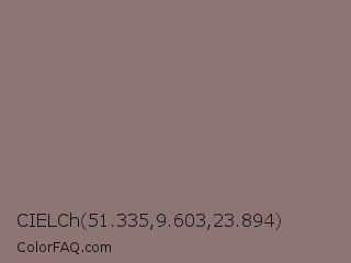 CIELCh 51.335,9.603,23.894 Color is a normal red color and the nearest color is Hemp #907874. Hex code #8c7574 and RGB value is rgb(140,117,116). In RGB color space, this color is composed of 55% red, 46% green, 45% blue, In CMYK color space, this color is composed of 0% cyan, 16% magenta, 17% yellow , 45% black , In HSL color space, this color has a hue angle of 2° , 9% saturation and 50% lightness.