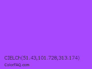 CIELCh 51.43,101.728,313.174 Color is a light purple color and the nearest color is Navy Purple #9457eb. Hex code #a647fc and RGB value is rgb(166,71,252). In RGB color space, this color is composed of 65% red, 28% green, 99% blue, In CMYK color space, this color is composed of 34% cyan, 72% magenta, 0% yellow , 1% black , In HSL color space, this color has a hue angle of 271° , 97% saturation and 63% lightness.