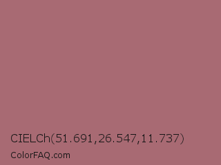 CIELCh 51.691,26.547,11.737 Color is a normal red color and the nearest color is Coral Tree #a86b6b. Hex code #a86a73 and RGB value is rgb(168,106,115). In RGB color space, this color is composed of 66% red, 42% green, 45% blue, In CMYK color space, this color is composed of 0% cyan, 37% magenta, 32% yellow , 34% black , In HSL color space, this color has a hue angle of 351° , 26% saturation and 54% lightness.