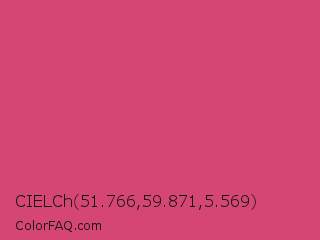CIELCh 51.766,59.871,5.569 Color is a normal rose color and the nearest color is Cabaret #d94972. Hex code #d64674 and RGB value is rgb(214,70,116). In RGB color space, this color is composed of 84% red, 27% green, 45% blue, In CMYK color space, this color is composed of 0% cyan, 67% magenta, 46% yellow , 16% black , In HSL color space, this color has a hue angle of 341° , 64% saturation and 56% lightness.