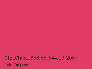 CIELCh 51.858,66.644,13.206 Color is a normal red color and the nearest color is Paradise Pink #e63e62. Hex code #e03c65 and RGB value is rgb(224,60,101). In RGB color space, this color is composed of 88% red, 24% green, 40% blue, In CMYK color space, this color is composed of 0% cyan, 73% magenta, 55% yellow , 12% black , In HSL color space, this color has a hue angle of 345° , 73% saturation and 56% lightness.