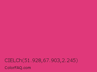 CIELCh 51.928,67.903,2.245 Color is a normal rose color and the nearest color is Cerise Pink #ec3b83. Hex code #e0387a and RGB value is rgb(224,56,122). In RGB color space, this color is composed of 88% red, 22% green, 48% blue, In CMYK color space, this color is composed of 0% cyan, 75% magenta, 46% yellow , 12% black , In HSL color space, this color has a hue angle of 336° , 73% saturation and 55% lightness.