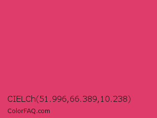 CIELCh 51.996,66.389,10.238 Color is a normal rose color and the nearest color is Paradise Pink #e63e62. Hex code #e03c6b and RGB value is rgb(224,60,107). In RGB color space, this color is composed of 88% red, 24% green, 42% blue, In CMYK color space, this color is composed of 0% cyan, 73% magenta, 52% yellow , 12% black , In HSL color space, this color has a hue angle of 343° , 73% saturation and 56% lightness.