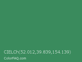 CIELCh 52.012,39.839,154.139 Color is a normal green color and the nearest color is Sea Green #2e8b57. Hex code #3a8b5d and RGB value is rgb(58,139,93). In RGB color space, this color is composed of 23% red, 55% green, 36% blue, In CMYK color space, this color is composed of 58% cyan, 0% magenta, 33% yellow , 45% black , In HSL color space, this color has a hue angle of 146° , 41% saturation and 39% lightness.
