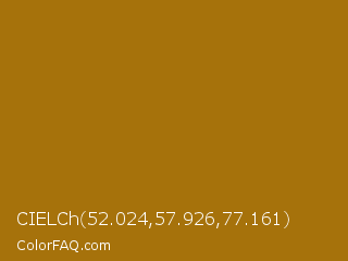 CIELCh 52.024,57.926,77.161 Color is a normal orange color and the nearest color is Buttered Rum #a1750d. Hex code #a6720b and RGB value is rgb(166,114,11). In RGB color space, this color is composed of 65% red, 45% green, 4% blue, In CMYK color space, this color is composed of 0% cyan, 31% magenta, 93% yellow , 35% black , In HSL color space, this color has a hue angle of 40° , 88% saturation and 35% lightness.
