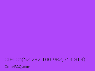 CIELCh 52.282,100.982,314.813 Color is a light purple color and the nearest color is Navy Purple #9457eb. Hex code #af46fa and RGB value is rgb(175,70,250). In RGB color space, this color is composed of 69% red, 27% green, 98% blue, In CMYK color space, this color is composed of 30% cyan, 72% magenta, 0% yellow , 2% black , In HSL color space, this color has a hue angle of 275° , 95% saturation and 63% lightness.