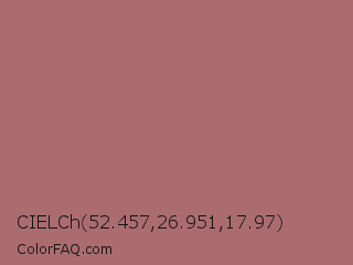 CIELCh 52.457,26.951,17.97 Color is a normal red color and the nearest color is Coral Tree #a86b6b. Hex code #ab6c70 and RGB value is rgb(171,108,112). In RGB color space, this color is composed of 67% red, 42% green, 44% blue, In CMYK color space, this color is composed of 0% cyan, 37% magenta, 35% yellow , 33% black , In HSL color space, this color has a hue angle of 356° , 27% saturation and 55% lightness.