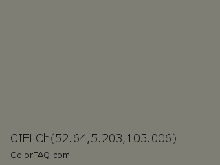 CIELCh 52.64,5.203,105.006 Color is a normal yellow color and the nearest color is Friar Gray #807e79. Hex code #7f7e75 and RGB value is rgb(127,126,117). In RGB color space, this color is composed of 50% red, 49% green, 46% blue, In CMYK color space, this color is composed of 0% cyan, 1% magenta, 8% yellow , 50% black , In HSL color space, this color has a hue angle of 54° , 4% saturation and 48% lightness.