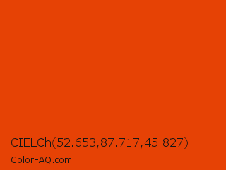 CIELCh 52.653,87.717,45.827 Color is a normal orange color and the nearest color is Trinidad #e64e03. Hex code #e64205 and RGB value is rgb(230,66,5). In RGB color space, this color is composed of 90% red, 26% green, 2% blue, In CMYK color space, this color is composed of 0% cyan, 71% magenta, 98% yellow , 10% black , In HSL color space, this color has a hue angle of 16° , 96% saturation and 46% lightness.