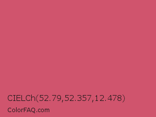 CIELCh 52.79,52.357,12.478 Color is a normal red color and the nearest color is Cabaret #d94972. Hex code #d0546d and RGB value is rgb(208,84,109). In RGB color space, this color is composed of 82% red, 33% green, 43% blue, In CMYK color space, this color is composed of 0% cyan, 60% magenta, 48% yellow , 18% black , In HSL color space, this color has a hue angle of 348° , 57% saturation and 57% lightness.
