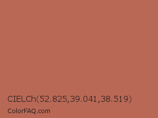 CIELCh 52.825,39.041,38.519 Color is a normal red color and the nearest color is Santa Fe #b16d52. Hex code #b96856 and RGB value is rgb(185,104,86). In RGB color space, this color is composed of 73% red, 41% green, 34% blue, In CMYK color space, this color is composed of 0% cyan, 44% magenta, 54% yellow , 27% black , In HSL color space, this color has a hue angle of 11° , 41% saturation and 53% lightness.