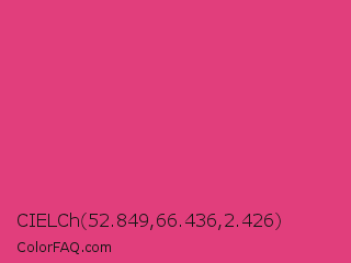 CIELCh 52.849,66.436,2.426 Color is a normal rose color and the nearest color is Cerise Pink #ec3b83. Hex code #e13e7c and RGB value is rgb(225,62,124). In RGB color space, this color is composed of 88% red, 24% green, 49% blue, In CMYK color space, this color is composed of 0% cyan, 72% magenta, 45% yellow , 12% black , In HSL color space, this color has a hue angle of 337° , 73% saturation and 56% lightness.