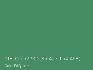 CIELCh 52.905,35.427,154.468 Color is a normal green color and the nearest color is Middle Green #4d8c57. Hex code #468c63 and RGB value is rgb(70,140,99). In RGB color space, this color is composed of 27% red, 55% green, 39% blue, In CMYK color space, this color is composed of 50% cyan, 0% magenta, 29% yellow , 45% black , In HSL color space, this color has a hue angle of 145° , 33% saturation and 41% lightness.