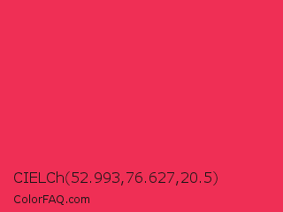 CIELCh 52.993,76.627,20.5 Color is a normal red color and the nearest color is Amaranth #e52b50. Hex code #ef2f55 and RGB value is rgb(239,47,85). In RGB color space, this color is composed of 94% red, 18% green, 33% blue, In CMYK color space, this color is composed of 0% cyan, 80% magenta, 64% yellow , 6% black , In HSL color space, this color has a hue angle of 348° , 86% saturation and 56% lightness.