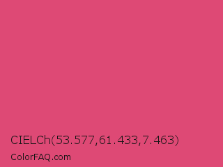 CIELCh 53.577,61.433,7.463 Color is a normal rose color and the nearest color is Cabaret #d94972. Hex code #de4975 and RGB value is rgb(222,73,117). In RGB color space, this color is composed of 87% red, 29% green, 46% blue, In CMYK color space, this color is composed of 0% cyan, 67% magenta, 47% yellow , 13% black , In HSL color space, this color has a hue angle of 342° , 69% saturation and 58% lightness.
