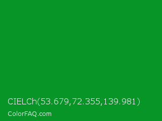 CIELCh 53.679,72.355,139.981 Color is a dark green color and the nearest color is North Texas Green #059033. Hex code #069526 and RGB value is rgb(6,149,38). In RGB color space, this color is composed of 2% red, 58% green, 15% blue, In CMYK color space, this color is composed of 96% cyan, 0% magenta, 74% yellow , 42% black , In HSL color space, this color has a hue angle of 133° , 92% saturation and 30% lightness.