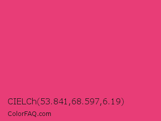 CIELCh 53.841,68.597,6.19 Color is a normal rose color and the nearest color is Cerise Pink #ec3b83. Hex code #e83d77 and RGB value is rgb(232,61,119). In RGB color space, this color is composed of 91% red, 24% green, 47% blue, In CMYK color space, this color is composed of 0% cyan, 74% magenta, 49% yellow , 9% black , In HSL color space, this color has a hue angle of 340° , 79% saturation and 57% lightness.