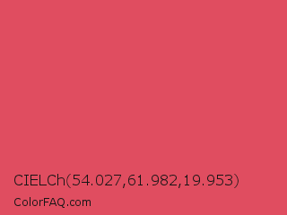 CIELCh 54.027,61.982,19.953 Color is a normal red color and the nearest color is Mandy #e25465. Hex code #e04d60 and RGB value is rgb(224,77,96). In RGB color space, this color is composed of 88% red, 30% green, 38% blue, In CMYK color space, this color is composed of 0% cyan, 66% magenta, 57% yellow , 12% black , In HSL color space, this color has a hue angle of 352° , 70% saturation and 59% lightness.