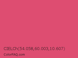 CIELCh 54.058,60.003,10.607 Color is a normal red color and the nearest color is Cabaret #d94972. Hex code #de4d71 and RGB value is rgb(222,77,113). In RGB color space, this color is composed of 87% red, 30% green, 44% blue, In CMYK color space, this color is composed of 0% cyan, 65% magenta, 49% yellow , 13% black , In HSL color space, this color has a hue angle of 345° , 69% saturation and 59% lightness.