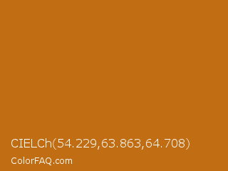 CIELCh 54.229,63.863,64.708 Color is a normal orange color and the nearest color is Alloy Orange #c46210. Hex code #c06d13 and RGB value is rgb(192,109,19). In RGB color space, this color is composed of 75% red, 43% green, 7% blue, In CMYK color space, this color is composed of 0% cyan, 43% magenta, 90% yellow , 25% black , In HSL color space, this color has a hue angle of 31° , 82% saturation and 41% lightness.
