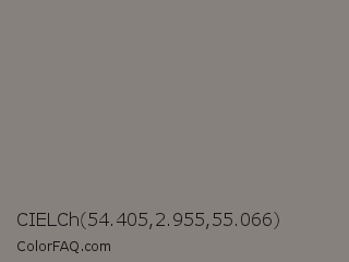 CIELCh 54.405,2.955,55.066 Color is a normal orange color and the nearest color is Rocket Metallic #8a7f80. Hex code #87817e and RGB value is rgb(135,129,126). In RGB color space, this color is composed of 53% red, 51% green, 49% blue, In CMYK color space, this color is composed of 0% cyan, 4% magenta, 7% yellow , 47% black , In HSL color space, this color has a hue angle of 20° , 4% saturation and 51% lightness.