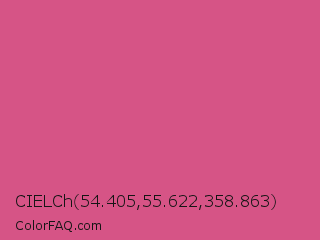 CIELCh 54.405,55.622,358.863 Color is a normal rose color and the nearest color is Mystic #d65282. Hex code #d65486 and RGB value is rgb(214,84,134). In RGB color space, this color is composed of 84% red, 33% green, 53% blue, In CMYK color space, this color is composed of 0% cyan, 61% magenta, 37% yellow , 16% black , In HSL color space, this color has a hue angle of 337° , 61% saturation and 58% lightness.