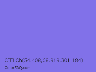 CIELCh 54.408,68.919,301.184 Color is a light indigo color and the nearest color is Medium Slate Blue #7b68ee. Hex code #8171e9 and RGB value is rgb(129,113,233). In RGB color space, this color is composed of 51% red, 44% green, 91% blue, In CMYK color space, this color is composed of 45% cyan, 52% magenta, 0% yellow , 9% black , In HSL color space, this color has a hue angle of 248° , 73% saturation and 68% lightness.