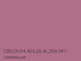 CIELCh 54.424,29.41,354.397 Color is a normal rose color and the nearest color is Turkish Rose #b57281. Hex code #b06f88 and RGB value is rgb(176,111,136). In RGB color space, this color is composed of 69% red, 44% green, 53% blue, In CMYK color space, this color is composed of 0% cyan, 37% magenta, 23% yellow , 31% black , In HSL color space, this color has a hue angle of 337° , 29% saturation and 56% lightness.
