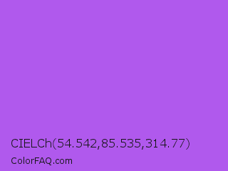 CIELCh 54.542,85.535,314.77 Color is a light purple color and the nearest color is Navy Purple #9457eb. Hex code #b059ed and RGB value is rgb(176,89,237). In RGB color space, this color is composed of 69% red, 35% green, 93% blue, In CMYK color space, this color is composed of 26% cyan, 62% magenta, 0% yellow , 7% black , In HSL color space, this color has a hue angle of 275° , 80% saturation and 64% lightness.