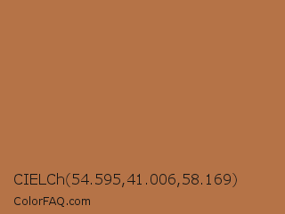 CIELCh 54.595,41.006,58.169 Color is a normal orange color and the nearest color is Brown Sugar #af6e4d. Hex code #b57347 and RGB value is rgb(181,115,71). In RGB color space, this color is composed of 71% red, 45% green, 28% blue, In CMYK color space, this color is composed of 0% cyan, 36% magenta, 61% yellow , 29% black , In HSL color space, this color has a hue angle of 24° , 44% saturation and 49% lightness.