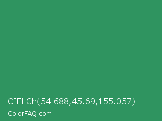 CIELCh 54.688,45.69,155.057 Color is a normal green color and the nearest color is Sea Green #2e8b57. Hex code #2f9460 and RGB value is rgb(47,148,96). In RGB color space, this color is composed of 18% red, 58% green, 38% blue, In CMYK color space, this color is composed of 68% cyan, 0% magenta, 35% yellow , 42% black , In HSL color space, this color has a hue angle of 149° , 52% saturation and 38% lightness.