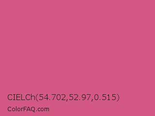 CIELCh 54.702,52.97,0.515 Color is a normal rose color and the nearest color is Mystic #d65282. Hex code #d45884 and RGB value is rgb(212,88,132). In RGB color space, this color is composed of 83% red, 35% green, 52% blue, In CMYK color space, this color is composed of 0% cyan, 58% magenta, 38% yellow , 17% black , In HSL color space, this color has a hue angle of 339° , 59% saturation and 59% lightness.
