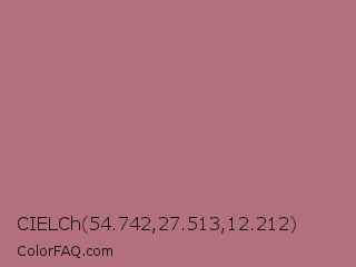 CIELCh 54.742,27.513,12.212 Color is a normal red color and the nearest color is Rose Gold #b76e79. Hex code #b2717a and RGB value is rgb(178,113,122). In RGB color space, this color is composed of 70% red, 44% green, 48% blue, In CMYK color space, this color is composed of 0% cyan, 37% magenta, 31% yellow , 30% black , In HSL color space, this color has a hue angle of 352° , 30% saturation and 57% lightness.
