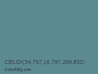 CIELCh 54.797,16.797,209.833 Color is a normal cyan color and the nearest color is Steel Teal #5f8a8b. Hex code #5b8b91 and RGB value is rgb(91,139,145). In RGB color space, this color is composed of 36% red, 55% green, 57% blue, In CMYK color space, this color is composed of 37% cyan, 4% magenta, 0% yellow , 43% black , In HSL color space, this color has a hue angle of 187° , 23% saturation and 46% lightness.