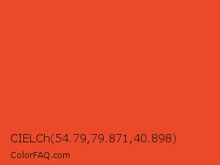 CIELCh 54.79,79.871,40.898 Color is a normal red color and the nearest color is Pomegranate #f34723. Hex code #eb4a2a and RGB value is rgb(235,74,42). In RGB color space, this color is composed of 92% red, 29% green, 16% blue, In CMYK color space, this color is composed of 0% cyan, 69% magenta, 82% yellow , 8% black , In HSL color space, this color has a hue angle of 10° , 83% saturation and 54% lightness.