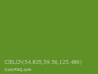 CIELCh 54.835,59.56,125.486 Color is a normal green color and the nearest color is Maximum Green #5e8c31. Hex code #5e9126 and RGB value is rgb(94,145,38). In RGB color space, this color is composed of 37% red, 57% green, 15% blue, In CMYK color space, this color is composed of 35% cyan, 0% magenta, 74% yellow , 43% black , In HSL color space, this color has a hue angle of 89° , 58% saturation and 36% lightness.