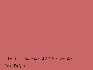 CIELCh 54.847,42.567,23.43 Color is a normal red color and the nearest color is Fuzzy Wuzzy #cc6666. Hex code #c86668 and RGB value is rgb(200,102,104). In RGB color space, this color is composed of 78% red, 40% green, 41% blue, In CMYK color space, this color is composed of 0% cyan, 49% magenta, 48% yellow , 22% black , In HSL color space, this color has a hue angle of 359° , 47% saturation and 59% lightness.