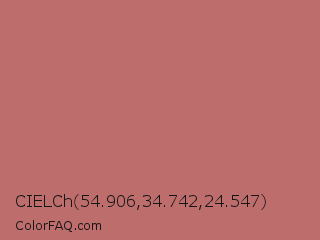 CIELCh 54.906,34.742,24.547 Color is a normal red color and the nearest color is Contessa #c6726b. Hex code #bd6d6c and RGB value is rgb(189,109,108). In RGB color space, this color is composed of 74% red, 43% green, 42% blue, In CMYK color space, this color is composed of 0% cyan, 42% magenta, 43% yellow , 26% black , In HSL color space, this color has a hue angle of 1° , 38% saturation and 58% lightness.