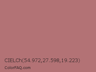 CIELCh 54.972,27.598,19.223 Color is a normal red color and the nearest color is Rose Gold #b76e79. Hex code #b37275 and RGB value is rgb(179,114,117). In RGB color space, this color is composed of 70% red, 45% green, 46% blue, In CMYK color space, this color is composed of 0% cyan, 36% magenta, 35% yellow , 30% black , In HSL color space, this color has a hue angle of 357° , 30% saturation and 57% lightness.