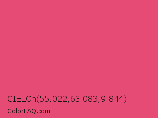 CIELCh 55.022,63.083,9.844 Color is a normal rose color and the nearest color is Cranberry #db5079. Hex code #e54b74 and RGB value is rgb(229,75,116). In RGB color space, this color is composed of 90% red, 29% green, 45% blue, In CMYK color space, this color is composed of 0% cyan, 67% magenta, 49% yellow , 10% black , In HSL color space, this color has a hue angle of 344° , 75% saturation and 60% lightness.