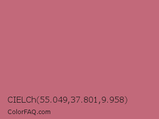 CIELCh 55.049,37.801,9.958 Color is a normal red color and the nearest color is Rose Gold #b76e79. Hex code #c2697a and RGB value is rgb(194,105,122). In RGB color space, this color is composed of 76% red, 41% green, 48% blue, In CMYK color space, this color is composed of 0% cyan, 46% magenta, 37% yellow , 24% black , In HSL color space, this color has a hue angle of 349° , 42% saturation and 59% lightness.